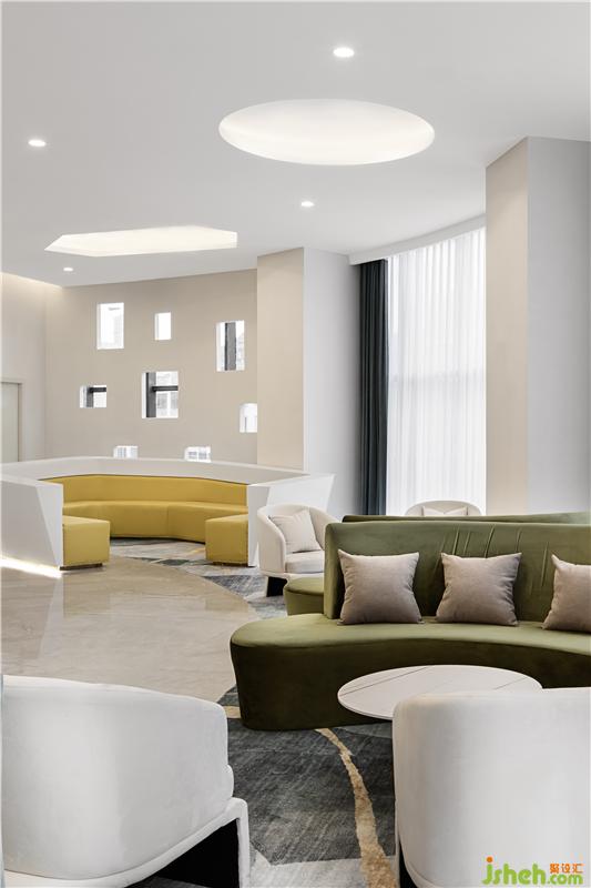 以患者的生活為中心的光環(huán)境,營造出安心、高情感、便捷的氛圍。曲折蜿蜒的地磚拼貼,對稱線性光源,給空間增添了幾分生動柔美感;點綴眾多異形光源,視線所及處舒朗開闊,將醫(yī)療空間舒緩、安定的氛圍淋漓展現。