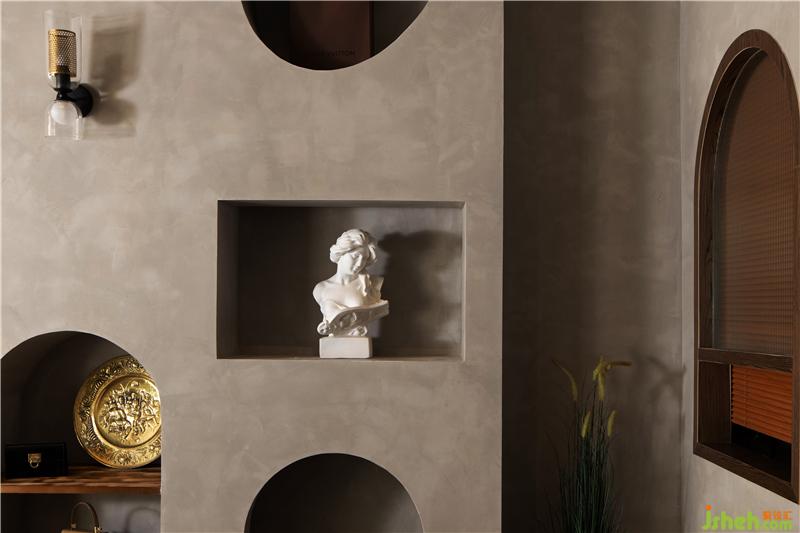 燈光是點(diǎn)亮空間靈魂的功臣,更是渲染氣氛的高手。整個(gè)空間基礎(chǔ)照明全部拋棄繁復(fù)又搶鏡的吊燈,中性光筒燈點(diǎn)布的方式,避免老式滿天星的耗能和呆板。對于氛圍光和功能光雙重需求的情況下,排除自然光和普通照明的干擾,陳列壁龕邊緣暗藏柔光LED光源,盡量避免光源直射物品,影響物品的壽命或者質(zhì)感變化。