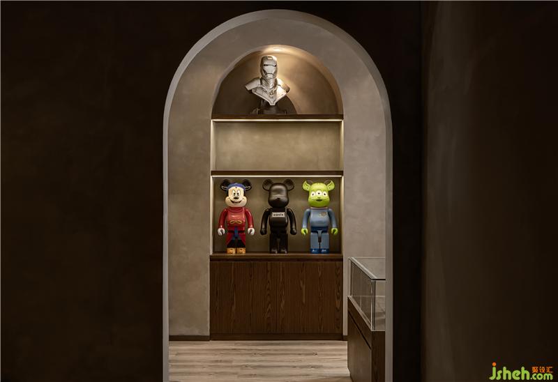 為出離傳統(tǒng)經(jīng)營(yíng)環(huán)境,用設(shè)計(jì)手法傳達(dá)“圓融”觀念。一來(lái)設(shè)置循環(huán)動(dòng)線環(huán)抱前臺(tái),寓意為流水源源不絕,財(cái)源廣進(jìn)。二來(lái)前方留出較為寬敞的行走空間,暗示可咸可甜的社交距離。整個(gè)購(gòu)物過(guò)程親和愉悅,避免了過(guò)度商業(yè)化痕跡。