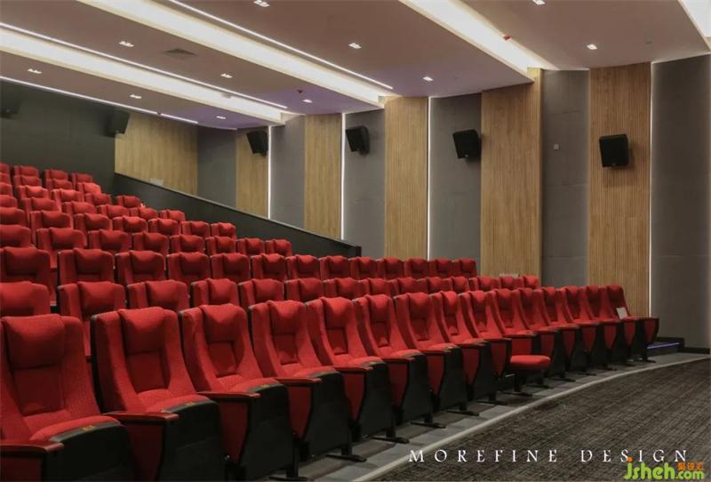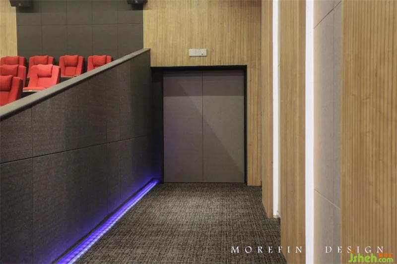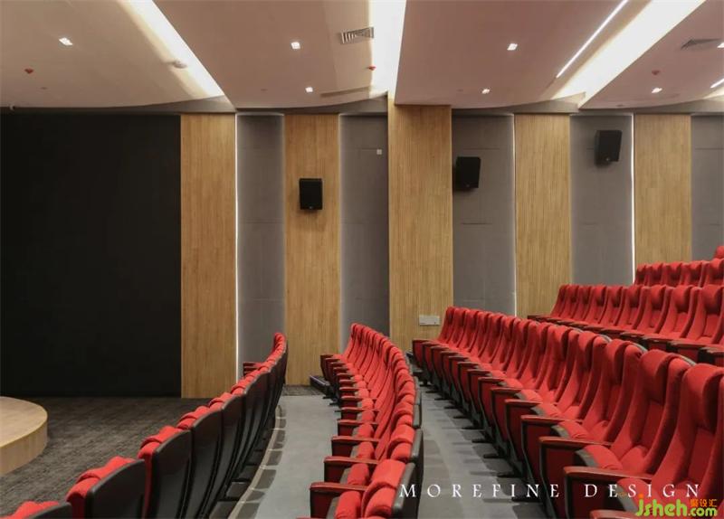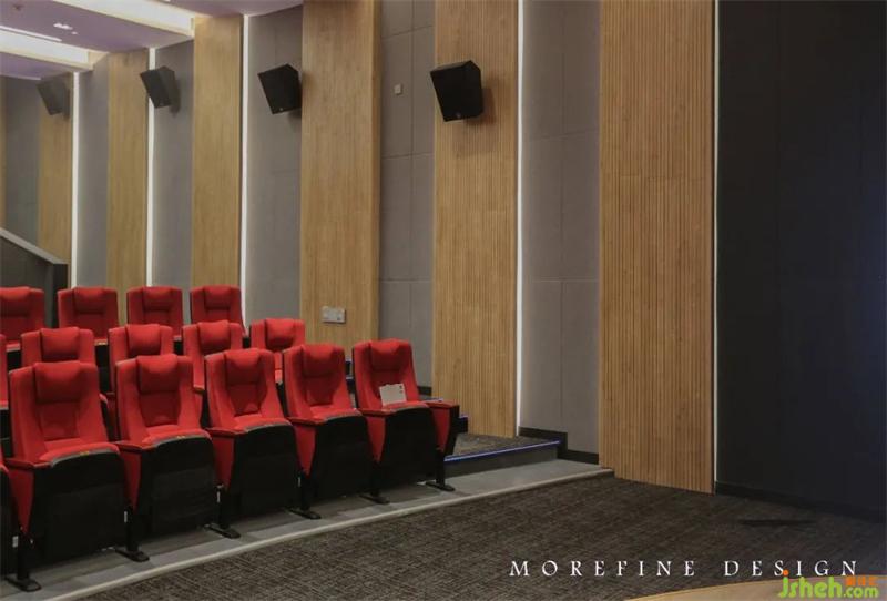 每一個過渡的位置、尺度的細節(jié)、線條的粗細、體塊的高矮,都沒有具象含義,皆是對構(gòu)成純粹、本心的抽象表達。點、線、面與光、色、材交相輝映、形成一組虛實、層次間的對比,飾面光影莊重,聲源立體真實臨現(xiàn)。