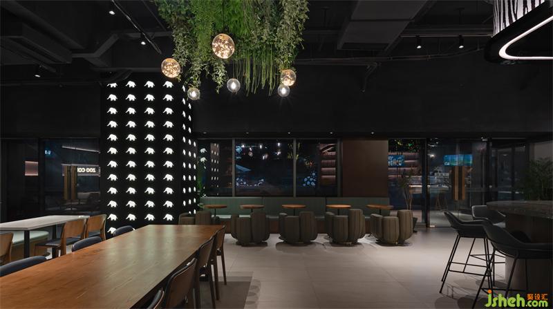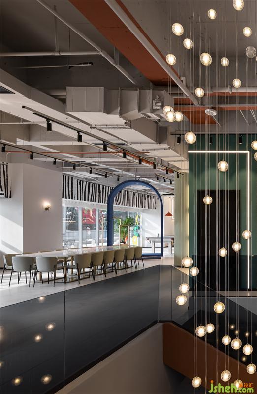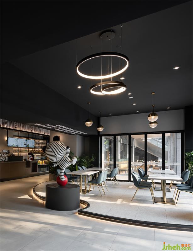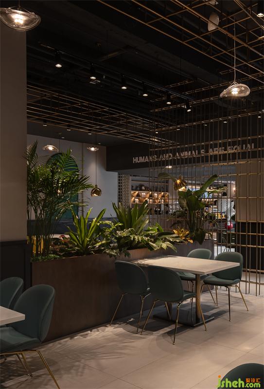 就餐區(qū)像緞帶一般輕柔分界,延伸至下個區(qū)域,