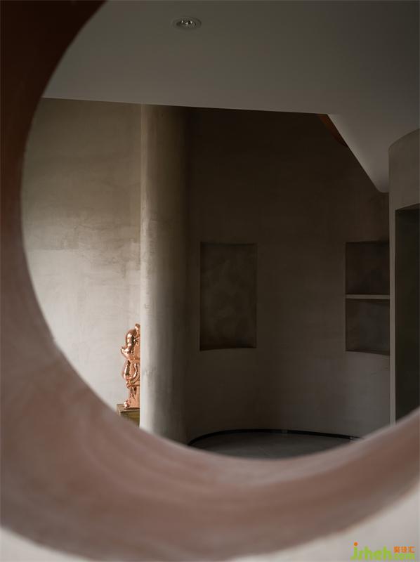 為了突出空間優(yōu)勢,極大程度保留了空曠感和立體效應(yīng),外墻和內(nèi)部空間基調(diào)一致,建筑元素和柱體式樣頻繁出場,即使運用了古典主義美學(xué)元素和現(xiàn)代風(fēng)格過渡時期的掠影融合,這種無刻意區(qū)域分隔和無明確風(fēng)格的洞見,仍充滿了清晰的流暢性,同時保留了大部分開放的自由光線和良好的影音傳導(dǎo)。