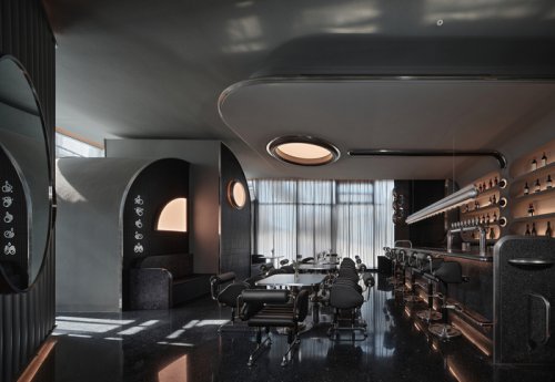 弧面頂上6顆吸頂燈,如星月般指引方向,左右兩側(cè)的墻角是兩條光之河流,而盡頭是一片大海.這片大海,便是一面電動(dòng)移門(mén),阻隔著酒吧主體部分和玄關(guān)的空間.這種阻隔像是生命里的一塊余地,調(diào)整節(jié)奏,可進(jìn)可退.