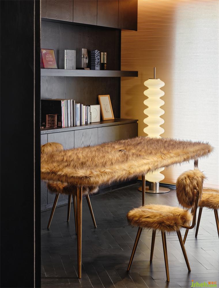 另有一間覆蓋著滿滿人造絨的“毛毛屋”,那是李文強(qiáng)的個(gè)人辦公室?!懊钡撵`感源自一只貓?!八邪㈤?,2017年來(lái)到我們工作室,被我養(yǎng)得很胖,所以工作室取名PIG,之后才有了‘用可愛(ài)拯救城市’,辦公室設(shè)計(jì)讓建筑空間因?yàn)橛腥さ脑O(shè)計(jì)能夠被人喜愛(ài)”。
