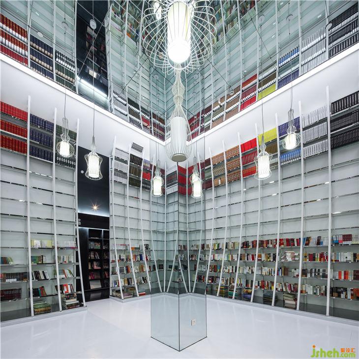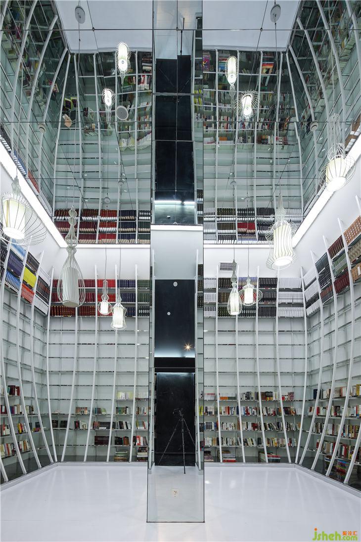 二層的中心是純潔的白色,書籍的圣殿,在鏡面天花里,弧線上升的書架在虛像的另一面和實(shí)像閉合成一個(gè)完全意義的圣殿,更是蒼穹,這你無法用言語去精確描述。終于,當(dāng)你通過書本堆積的樓梯爬上來進(jìn)入圣殿,你或許會(huì)長(zhǎng)長(zhǎng)吐口氣,坐在地上,有點(diǎn)訝異,但更多是喜悅,觸手就是仿佛漂浮在空中的書籍,但這里閱讀的已不僅僅是文字的追逐,而是某種心靈的感應(yīng)。當(dāng)你浸潤在知識(shí)的大海之中,就會(huì)發(fā)現(xiàn)閱讀是我們不可或缺的生活本能。而你更明白了書籍是一種媒介,在圣殿,讓你和久已遺忘的靈魂有了重新認(rèn)知的機(jī)會(huì),你看到了天堂。