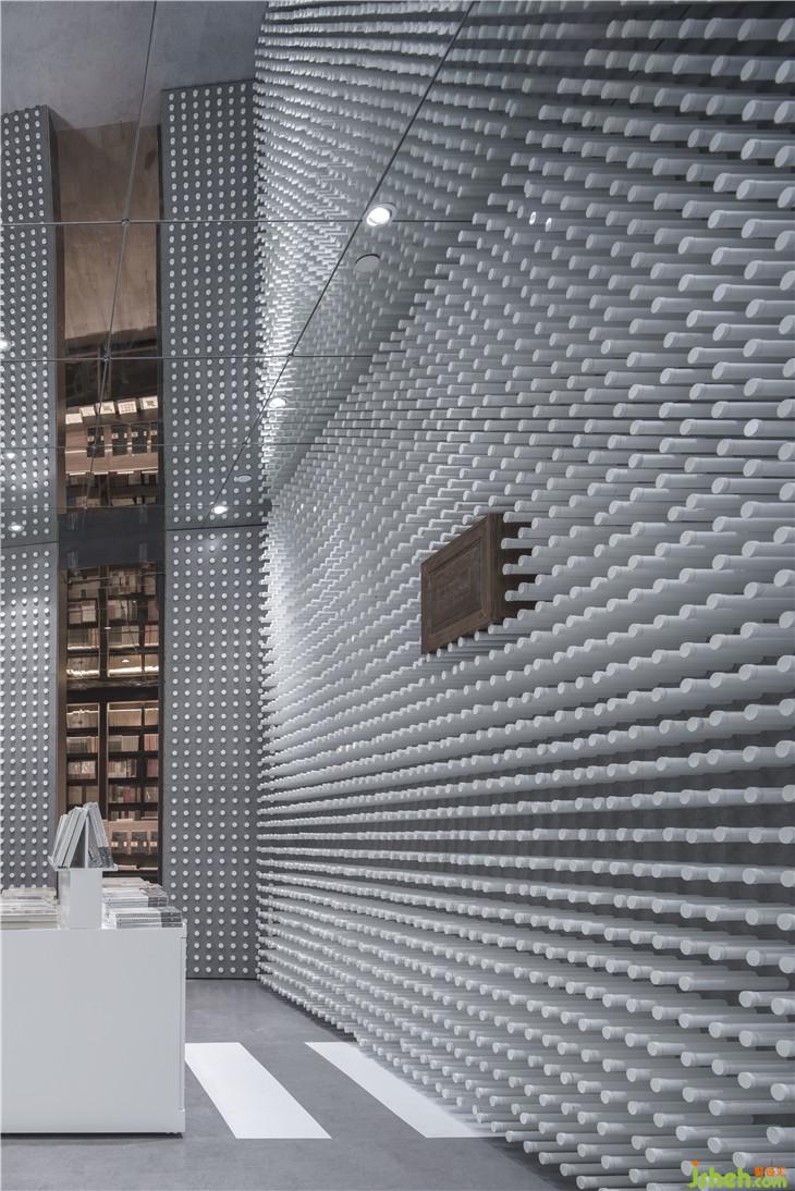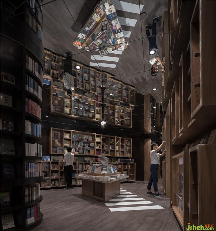 接承這個空間的是一個休閑閱讀的長廊,這里有一排長長的公園椅子,書架設(shè)在兩箱,書墻每隔一段就會有一盞路燈。這里不僅是讀書長廊,更是一個室內(nèi)讀書公園。慢慢行走在書的世界,累了,坐在路燈下的椅子上,靜靜安放精神在一本心愛的書上,正是這個空間想給予讀者的閱讀環(huán)境。室內(nèi)設(shè)計師