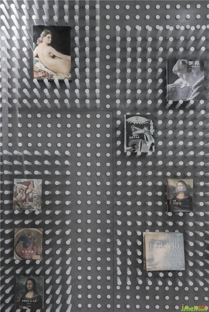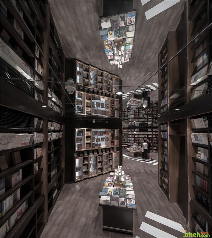 穿越這安靜的圖書公園便來到了書籍的天空之城,一條蜿蜒的路徑貫穿4幢由書架構(gòu)筑成如建筑般的書架,讓讀者體驗穿越在真正的書的城池,在路徑上看在這里每一間房子外的墻都是書架構(gòu)成,而且留有大面積的可透視窗口,可以看見“房子”內(nèi)的情景,但從房子內(nèi)部看則是一個個文化藝術(shù)主題和相應(yīng)的書籍館。4間建筑內(nèi)面積有大有小,小型的猶如一個安靜的書房,大的可以容納小型的讀書會。這里用書記構(gòu)建城市的模樣,與外界喧囂的街區(qū)不同,這里只有安靜與作者之間的隔空交流與感悟的精神世界。書架之間的路徑寬窄漸變,曲徑優(yōu)折間可見地面標(biāo)示的斑馬路線,這里,恍惚間像是走在上海的百年街道感受浪漫與上海的情懷。室內(nèi)設(shè)計師