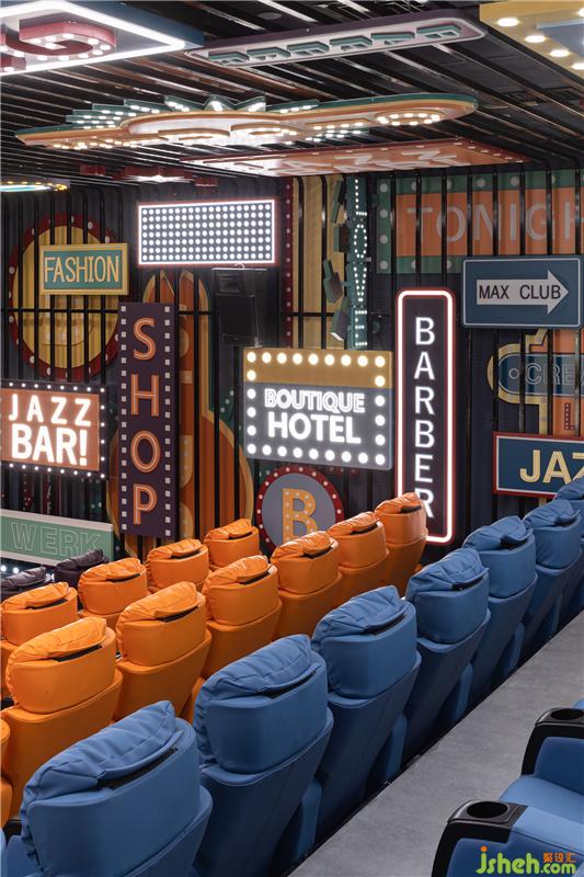 四號影廳轉(zhuǎn)場至極具未來感的超現(xiàn)實街頭,鮮明的霓虹盡顯城市活力,繽紛的色彩傳達張揚時尚。電影院設(shè)計