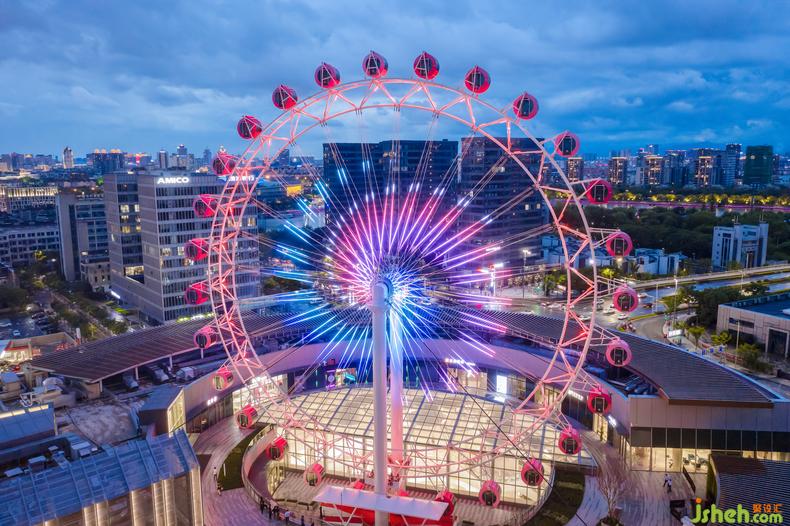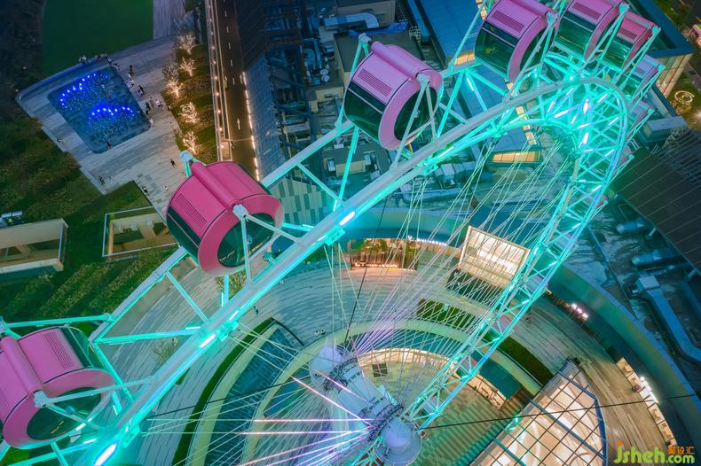 除了2、3層的兒童主題公區(qū)改造,設(shè)計(jì)師還應(yīng)甲方的需求將室外露臺(tái)區(qū)打造成了整個(gè)商場的最浪漫打卡地點(diǎn)。室內(nèi)設(shè)計(jì)師目標(biāo)人群從低齡兒童層,拓展到了年輕群體,粉紅摩天輪為空間中亟待發(fā)生的浪漫故事作了鋪墊