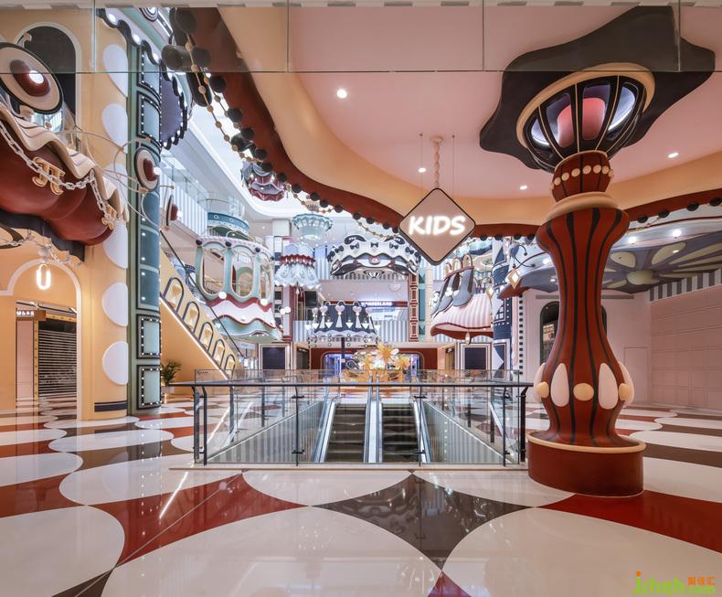 主題公區(qū)設(shè)計師從空間結(jié)構(gòu)切入,以高維度的建筑策略性思考,制造了一場關(guān)乎商場公區(qū)美學(xué)體系的巨大反轉(zhuǎn),同時依舊妥善滿足功能性與商業(yè)角度的現(xiàn)實考量。故事性空間語言與兒童成長教育在此共融共筑,成就了主題性商場風(fēng)格迥異的商業(yè)典案。
