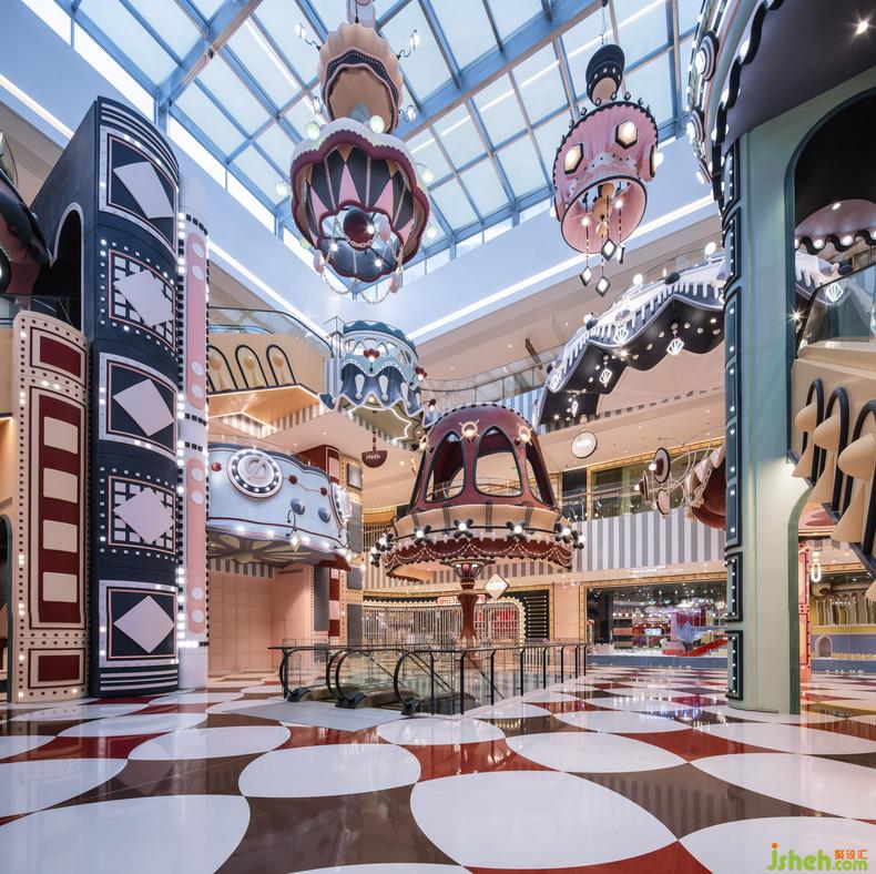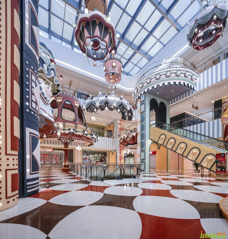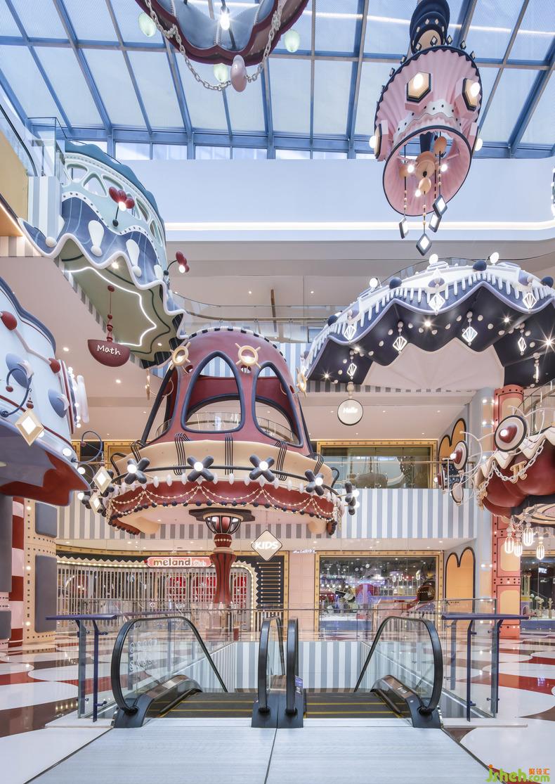 設(shè)計師突破傳統(tǒng)裝飾美學(xué),賦予書本、臺燈、鳳尾夾、主題公區(qū)設(shè)計尺子等文具恢弘的建筑尺度,營造兒童區(qū)獨(dú)特的沉浸式體驗(yàn)效果。巨型構(gòu)造與日常用品的奇異尺度反差,不僅更好地統(tǒng)籌了公區(qū)內(nèi)攔河裝飾、燈具、店鋪立面、導(dǎo)向標(biāo)識等,且場景的交錯讓童話氛圍能夠迅速傳達(dá)到人群,準(zhǔn)確捕捉主力消費(fèi)者的注意力。