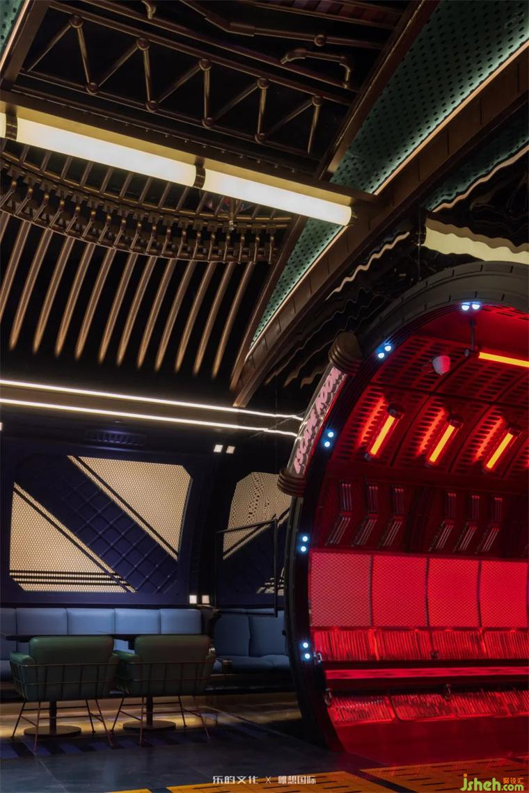 設(shè)計(jì)師在超4500㎡的空間內(nèi),裝修設(shè)計(jì)串聯(lián)起多樣且復(fù)雜的十余個(gè)娛樂區(qū)與功能區(qū),統(tǒng)籌出一系列完整的沉浸式體驗(yàn)。從未來藝術(shù)展現(xiàn)的超現(xiàn)實(shí)體驗(yàn)切入思考,以奇幻張揚(yáng)的動(dòng)畫美術(shù)風(fēng)格,揮霍想象,大開大合,營造魔幻未來感的空間氛圍與強(qiáng)烈的敘事張力。