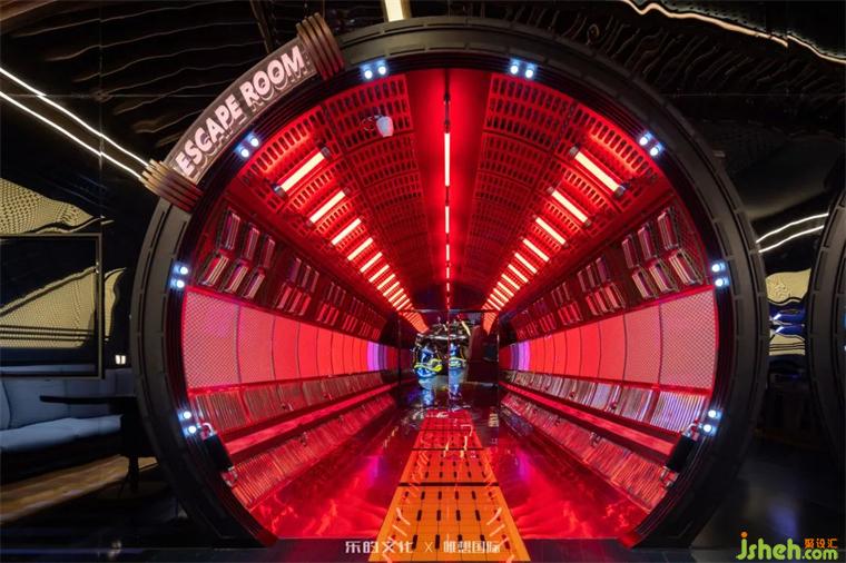 盜夢列車停靠之處,銜接著前往這場玩樂大冒險下一站點(diǎn)的神秘通道,炫彩燈箱裝飾的金屬管道四通八達(dá)地串聯(lián)起了其他娛樂區(qū),帶領(lǐng)玩家們瞬移至畫風(fēng)各異的平行時空。差異性極強(qiáng)的空間格局與風(fēng)格化色調(diào)大大豐富了整體項目的體驗(yàn),裝修設(shè)計的亮眼一筆也再次激發(fā)消費(fèi)者的探索欲。