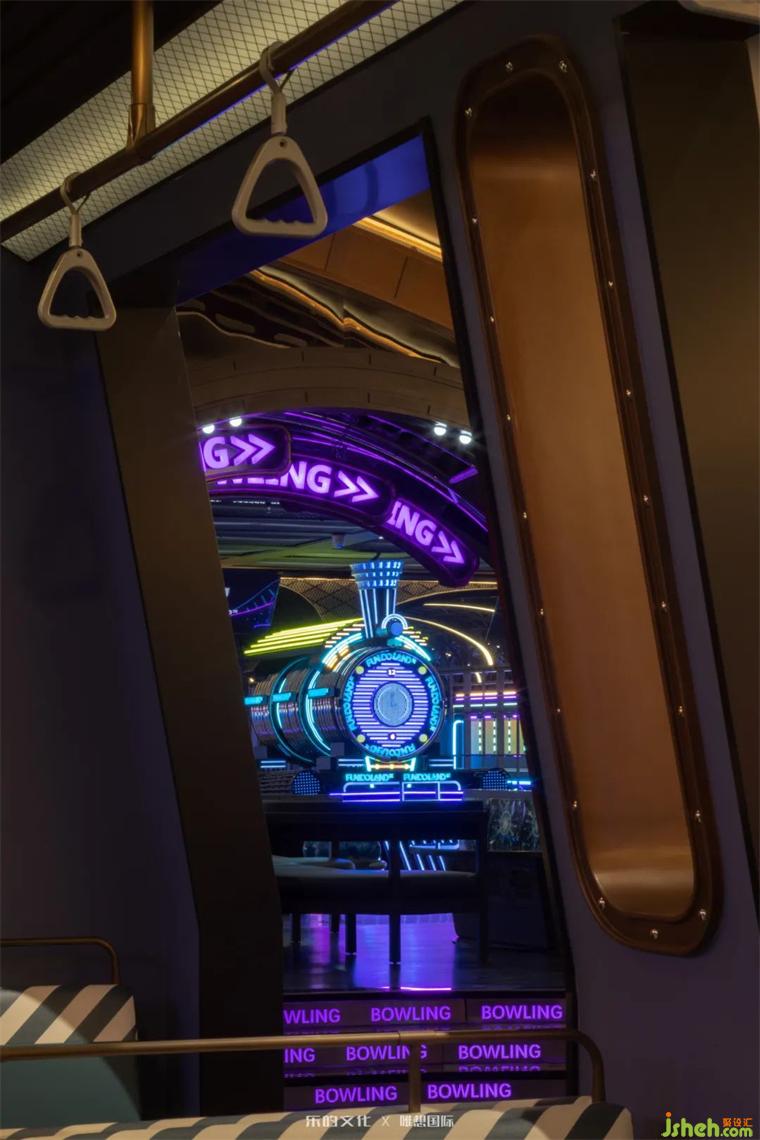 從保齡球館穿越到魔法車站,未曾設想過的體驗,裝修設計在這里全部觸手可及。保齡球館被設計師打造為銜接未來與過去時空的中央車站,顛覆了空間的刻板印象,帶著一種未來奇幻色彩,駛?cè)霑r空新紀元。裝修設計大氣開敞的廳內(nèi),一座巨大的火車頭坐落在視線的焦點位置。兩側(cè)的拱形金屬柱廊營造陣列美學,將游戲的娛樂趣味升級為儀式感滿滿的高端游樂體驗。