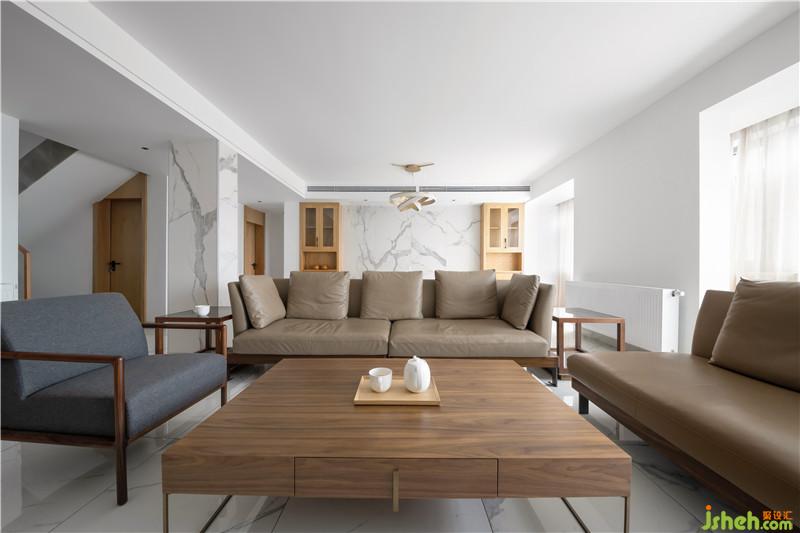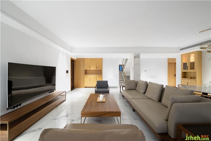 這個(gè)案例為一套復(fù)式樓,通風(fēng)采光好。設(shè)計(jì)師給這套房子表達(dá)了一種干凈空曠的無(wú)印良品風(fēng)格。在這個(gè)空間里主色調(diào)是白色,再配上原木色。功能上要滿足家里的常住人口使用以外就是考慮活動(dòng)與收納空間了。