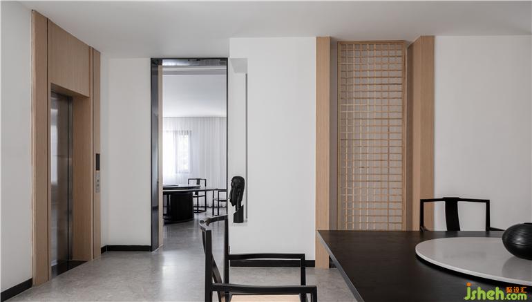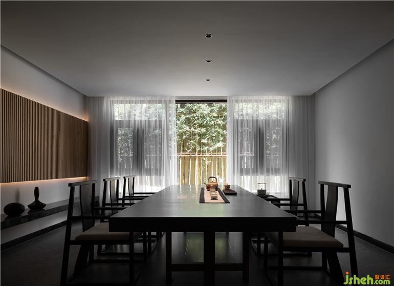 會客茶室私密而寧靜的氛圍,無聲且無縫的設計旨在平息內心的噪音,毫不浮夸的材料令人有意識地摒棄多余事物。在這個樸素又和諧的空間里,光影和形式無不展現著優(yōu)美的氣質。