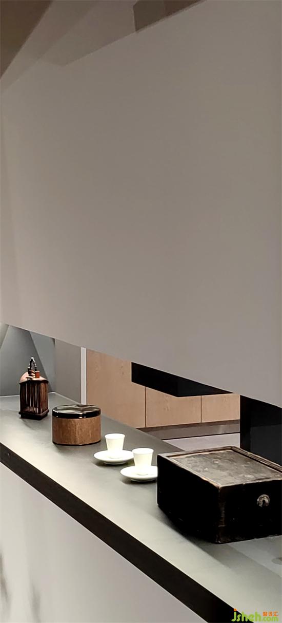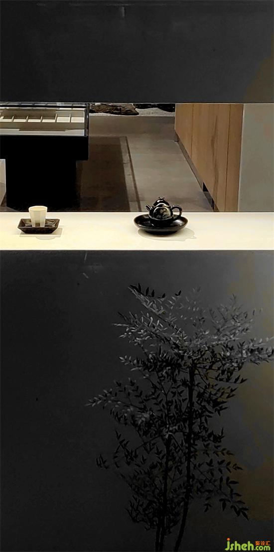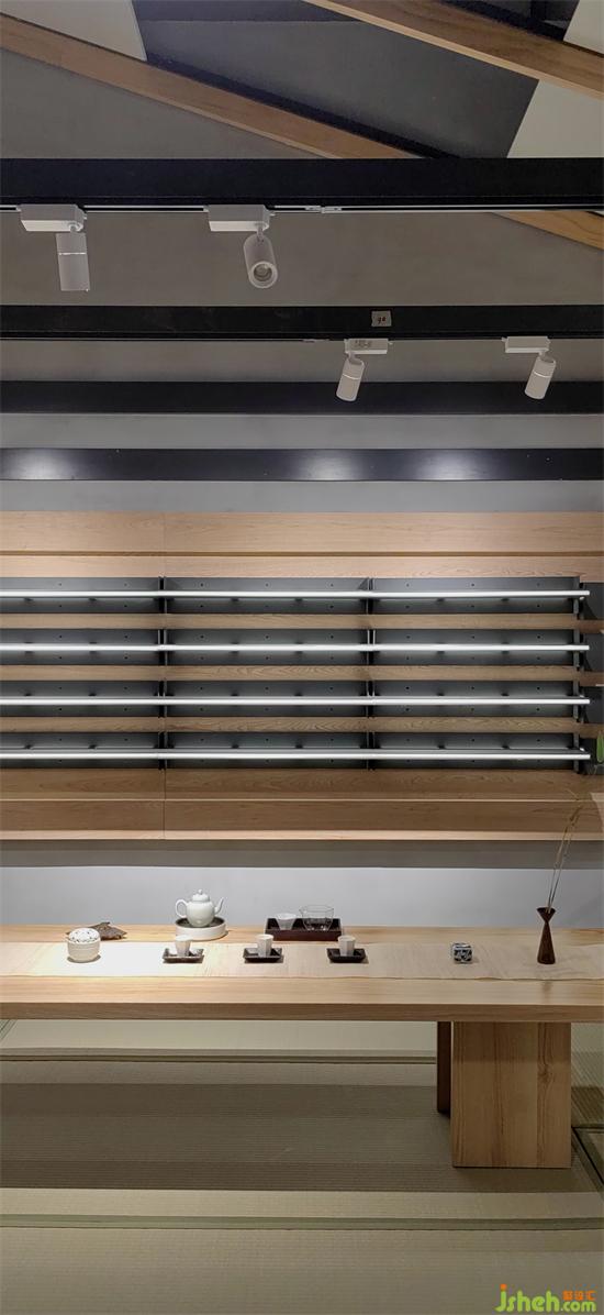 由連廊連接起來的茶室和展示區(qū)與入口處的前庭、中庭成為連續(xù)的整體,卻又各自對應(yīng)豐富的應(yīng)用場景,視野一下開闊起來。眼鏡店設(shè)計(jì)空間模糊內(nèi)與外的界限,內(nèi)與外是一體的融合的,是都被同等對待的,有一種互動(dòng)的親密融合關(guān)系,身處其中會有多點(diǎn)連續(xù)移動(dòng)以及視覺層次帶來的豐富的質(zhì)感變化體驗(yàn)。茶室的坡頂、連廊處向外支出的支窗都是內(nèi)與外的平衡。
