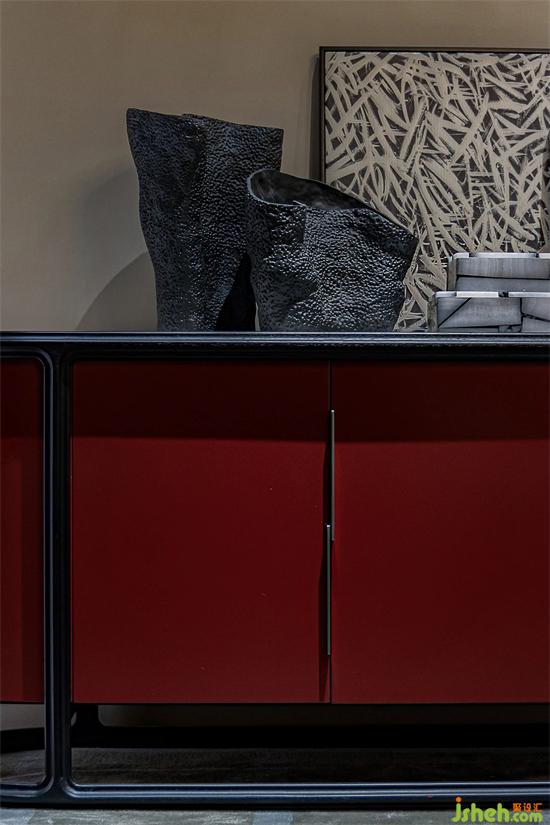 空間主張整體沉穩(wěn)雅奢為主,奢華精致,每一處場景,每一組擺件都呈現(xiàn)出一絲不茍的美學(xué)態(tài)度。家具展廳設(shè)計(jì)產(chǎn)品中融入了東方元素,形態(tài)優(yōu)雅、處處都體現(xiàn)了產(chǎn)品的細(xì)節(jié)之處。中國紅的運(yùn)用,為空間增加了一抹野奢的氣質(zhì)。
