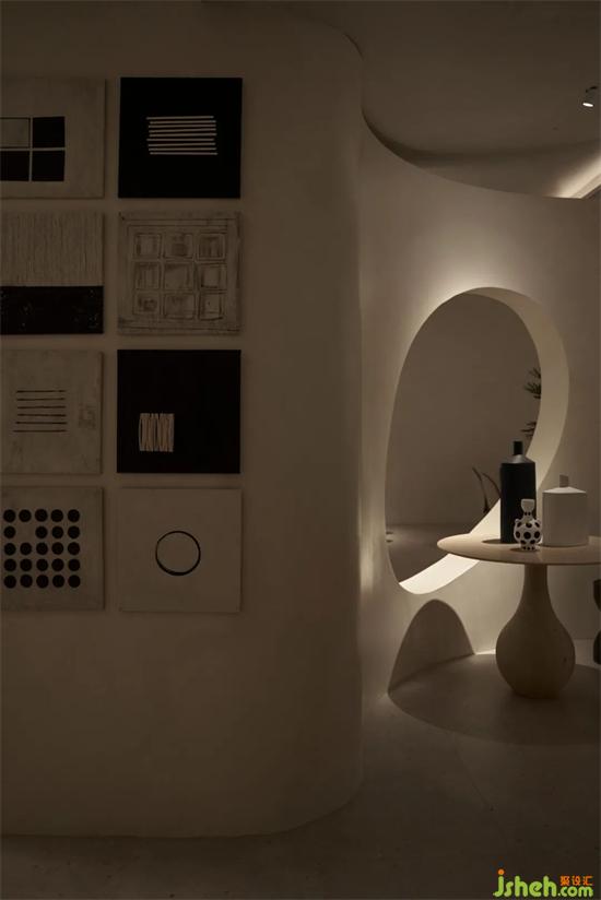 LA.Concept整個(gè)展廳分為兩部分,前廳為”Living”展出精致生活感的意式輕奢類家具,后場(chǎng)為”Art”也是甲方委托我們?cè)O(shè)計(jì)的區(qū)域。