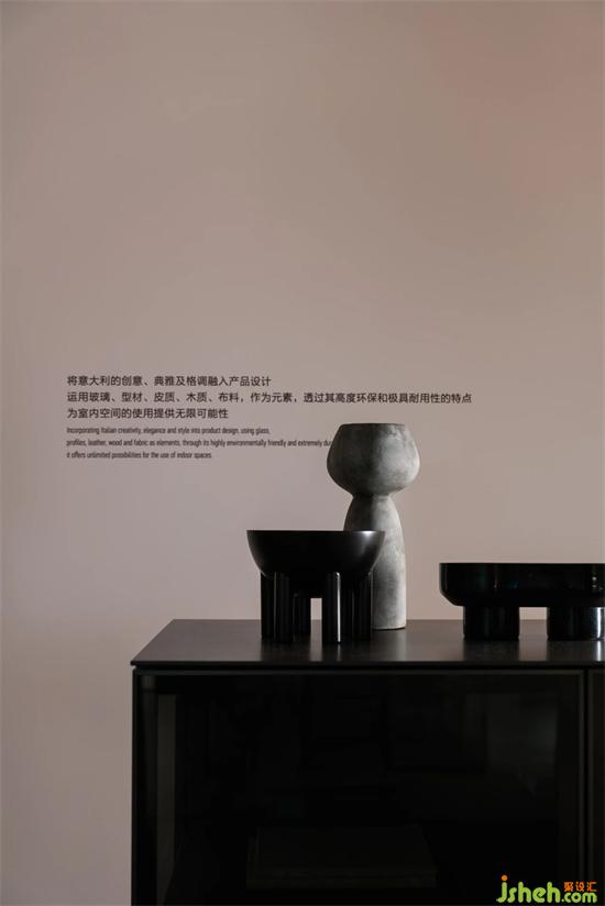 半透明的玻璃柜體形成空間朦朧的界線,以藝術(shù)的形式還原生活場(chǎng)景,為客戶提供空間設(shè)置的靈感。