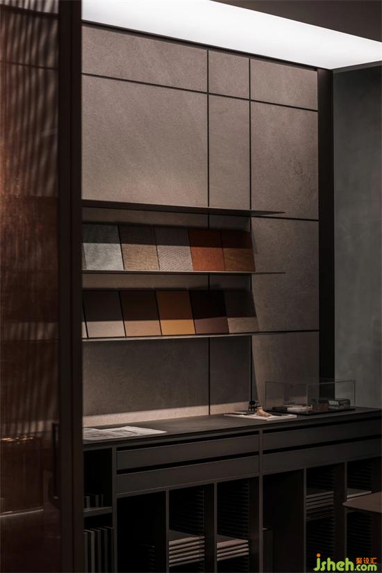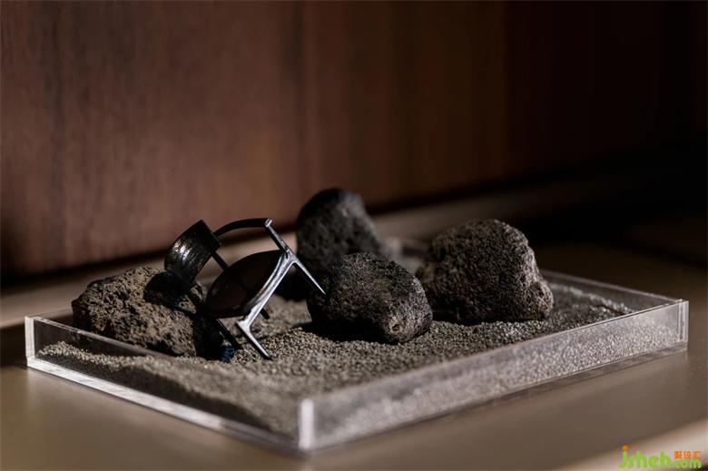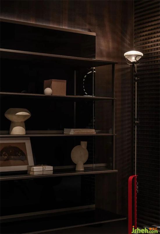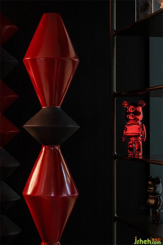 「 醉貌如霜葉,雖紅不是春 」自古文人墨客對(duì)紅色尤為偏愛。在物理聲學(xué)和光學(xué)的類比中,紅色往往代表著低頻長(zhǎng)波聲音,其衍射能力最強(qiáng),容易穿越障礙物,潤(rùn)舍納圖通過(guò)視覺沖擊形成強(qiáng)烈記憶。在寂靜的黑白灰之間,添一抹紅,激發(fā)空間的激情。