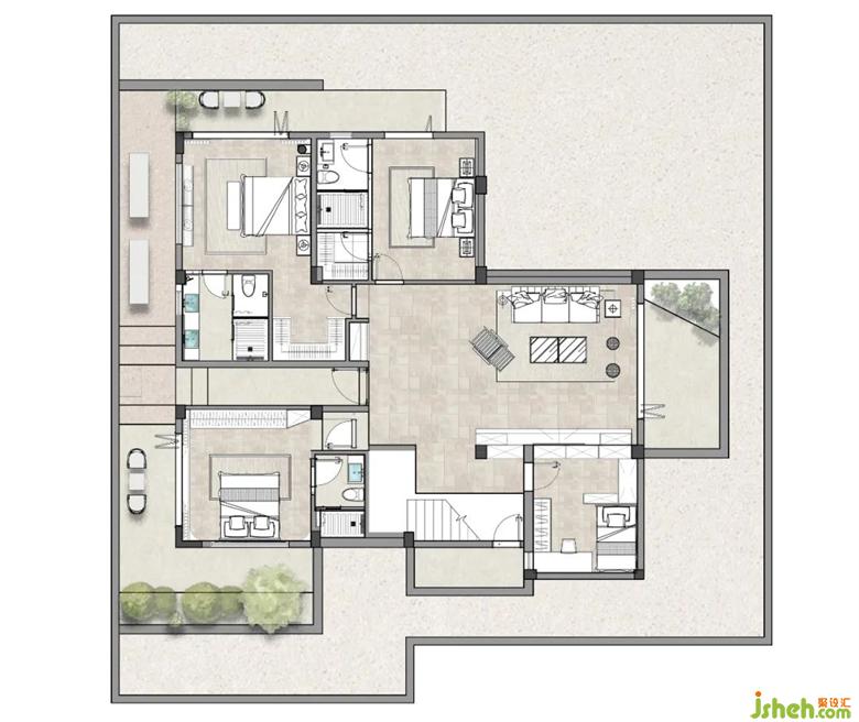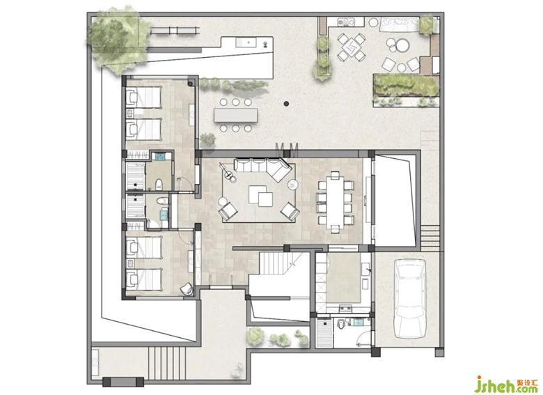 一個(gè)獨(dú)特的空間在空間里的生活體驗(yàn)感尤為重要而我們?cè)谙肴绾卧龠M(jìn)一步讓使用者別墅設(shè)計(jì)有機(jī)會(huì)在空間中去思考“動(dòng)” “樂(lè)” “院” “憩” “眠”五個(gè)板塊是我們對(duì)此空間的新定義。