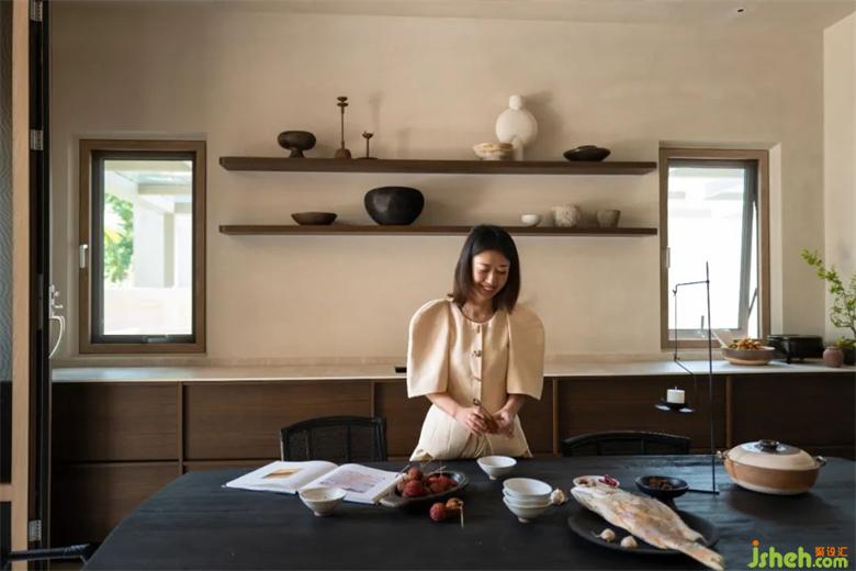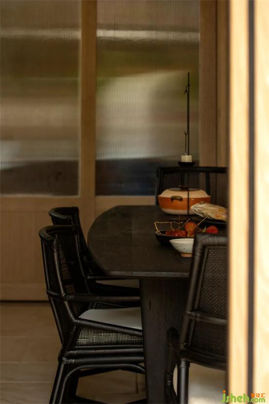 正對客廳用推拉式全開玻璃門讓客廳與院落隨時聯(lián)通,順著海風將椰林的香氣帶入室內(nèi)。房間內(nèi)保留了大面積的玻璃窗,別墅設(shè)計將外景納入室內(nèi),院墻的方格石籬笆讓陽光斑駁地照進來,顯得格外清透。