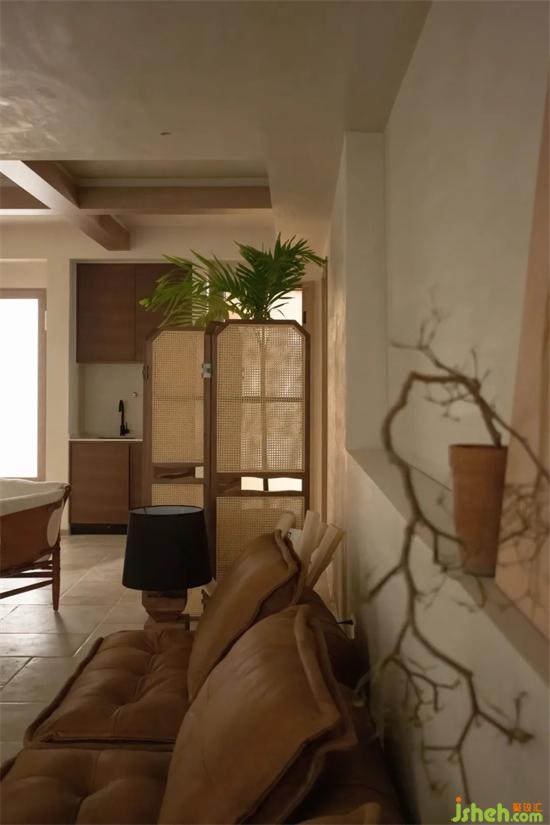 設計團隊將原本計劃設置在樓下的主臥及兩個兒童房盡量靠窗而建,由于取消了原本遮擋院落的實墻充沛的陽光也能通過天井直落各個臥室的窗邊。中間負一樓起居空間雖然增加采光面積但還是略顯不夠,借鑒建筑大師貝律銘大師在美秀美術館實用的頂部開窗形式,別墅設計用燈膜透光仿照開窗引光入室,自然不刻意。