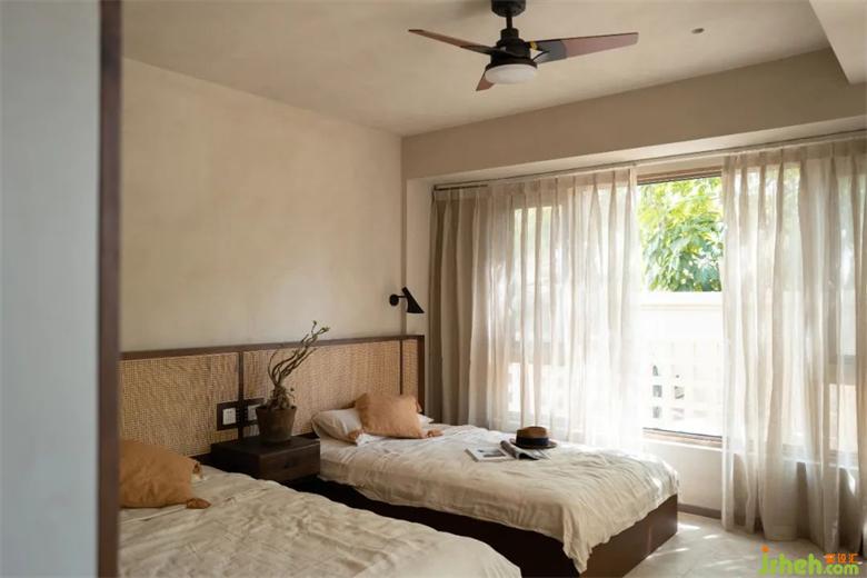 別墅設(shè)計(jì)團(tuán)隊(duì)將“眠”的區(qū)域分布設(shè)置在一層和負(fù)一層。將原本一層的單個(gè)超大臥室移至更為安靜的左院,一分為二,是佳佳為家中兩對(duì)老人準(zhǔn)備的臥室。
