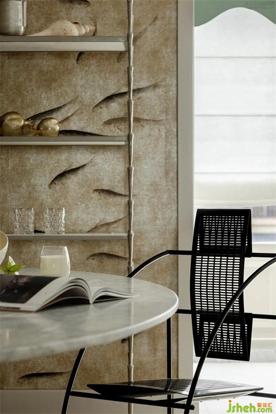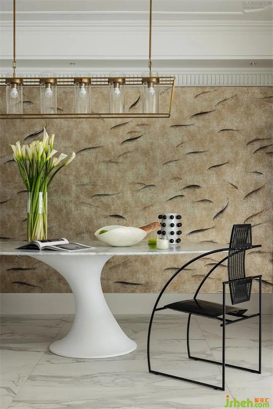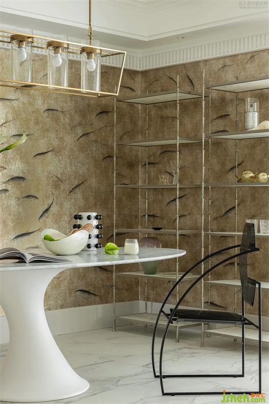 高掛的Art deco風燈具、竹節(jié)元素的餐架、意式中古的設計師椅、浪漫風情的花朵椅,這全都展示著「與藝術共居」的優(yōu)雅詩意。當音樂響起,品著咖啡,心儀的書籍,家裝設計翻開上次勾留的位置,享受著生活的溫暖與優(yōu)雅。