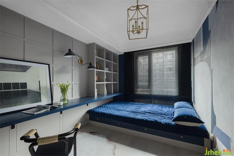 作為書房,我們大膽的讓其擁有客房的功能,家裝設(shè)計在滿足平時的閱讀與工作的前提下還能當(dāng)做訪客的臨時居所,使其功能最大化。