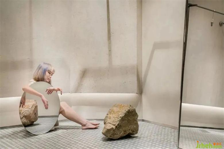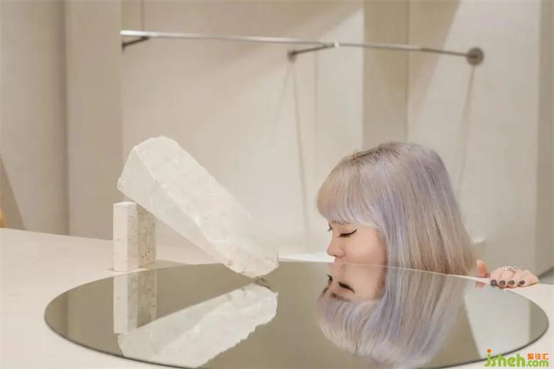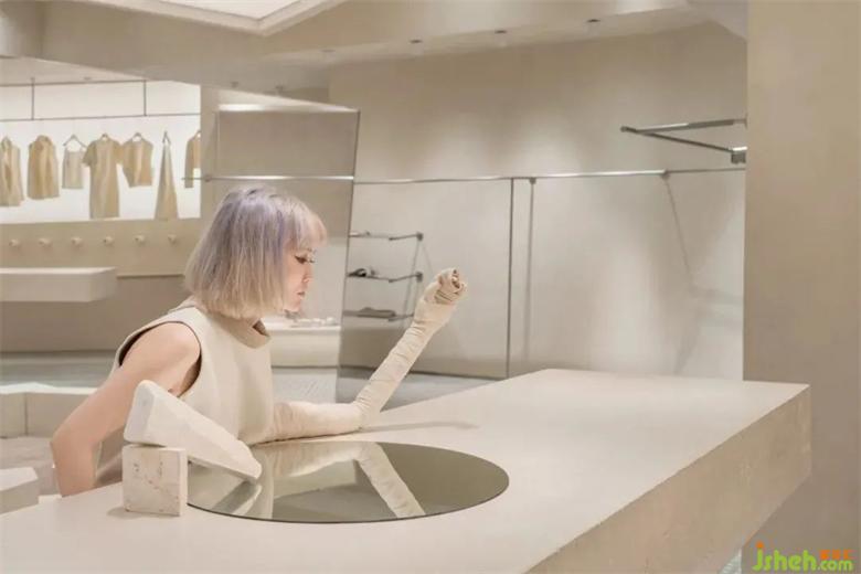 純手工涂抹細(xì)膩的意大利灰泥配合紋理時而均勻,時而粗糙的仿洞石涂料,讓空間重回“石器時代”,靜態(tài)空靈的建筑空間與先鋒大膽的剪裁、配色發(fā)生劃時代與地理的碰撞,店鋪設(shè)計用反差塑造時尚與高級感。