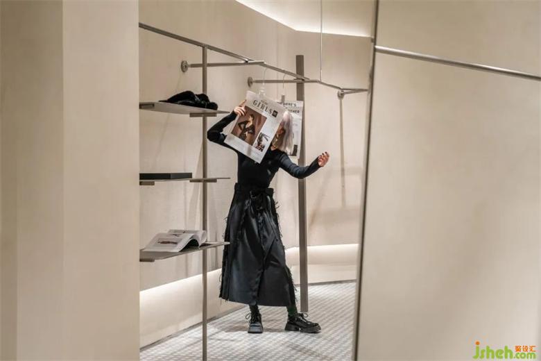此次創(chuàng)作,空間設(shè)計(jì)和品牌理念不謀而合。透過對品牌文化的挖掘,在130m2有限空間中,潤舍團(tuán)隊(duì)創(chuàng)造無限且自由空靈的表達(dá),又退而成為空間中的配角,店鋪設(shè)計(jì)讓消費(fèi)者與時(shí)裝產(chǎn)品成為主角,締結(jié)品牌與顧客之間的情感聯(lián)結(jié),那便是LEDIM WANG想表達(dá)的”簡約克制的時(shí)髦“。