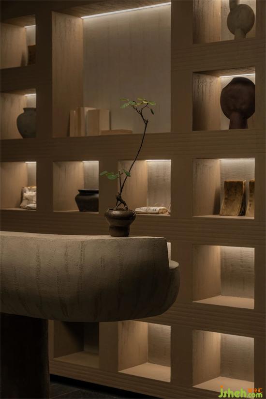 進?到空間的?邊,我們能感受到的場域帶來的能量,會所設計通過五感去作表達,?如我們看到的?海經(jīng)紋樣,??墨呈現(xiàn)的屏?,以及設計師??手繪的宮燈。我們?在空間??,可以聞到中藥的味道,它是我們以調(diào)理?到的中藥熱敷包還原傳統(tǒng)中藥的理療技法,讓每個?落都可以感受到?種熟悉感,可以卸下防備,正契合了我們的空間理念。會所設計室內(nèi)沒有?然采光,會讓?感到壓抑,于是我們借鑒了古典園林四合院的采光?式,?天光達到采光?的。