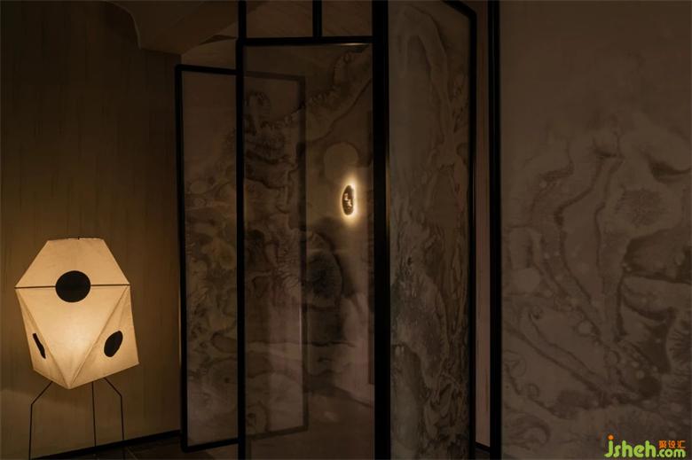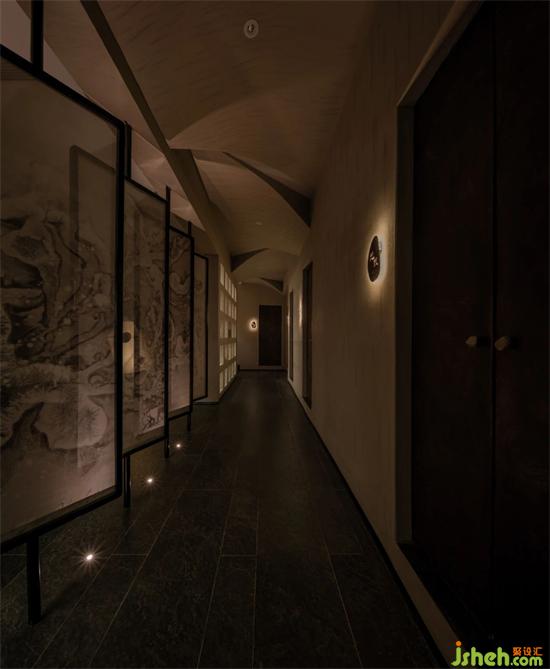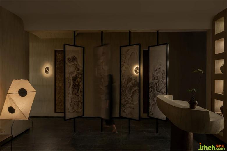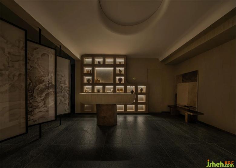陰為“體”,陽為“?”;陰為有形之“體”,陽為?形之“?” 整體空間注?元?。將整體有形之“體”相互作?。會所設(shè)計?廳接待區(qū)不僅作為客?來訪過渡第?空間,更是整體空間集中轉(zhuǎn)換功能的區(qū)域。到達接待區(qū),客?通過活動屏?的指引,可分別被店員帶?不同的理療室。