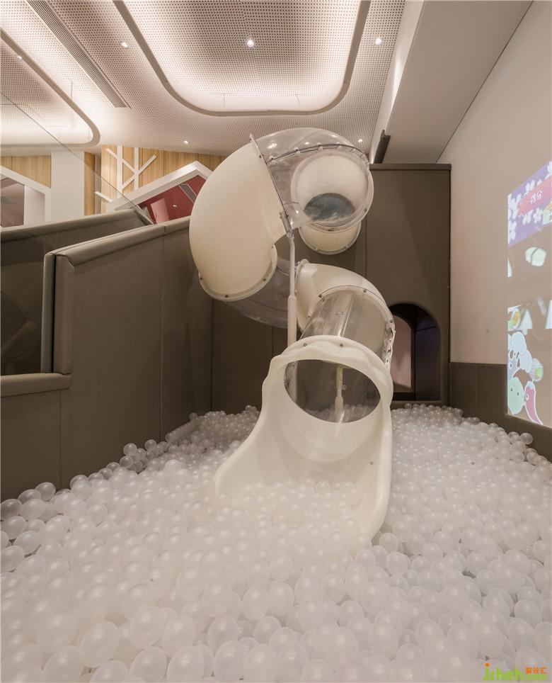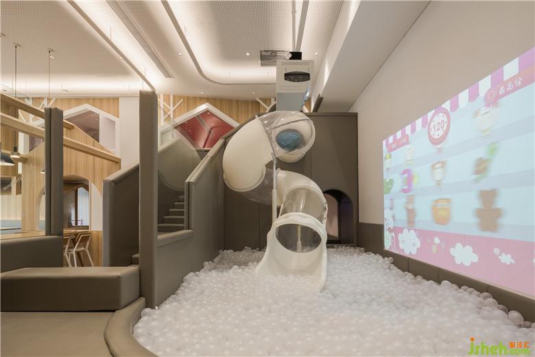 “樹屋”的概念貫穿了整個餐廳的空間設計,一個個錯落在空間里的小房子構(gòu)成了不同的兒童體驗空間,與就餐的大堂形成半圍繞的結(jié)構(gòu),空間疏密相互呼應。