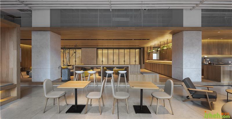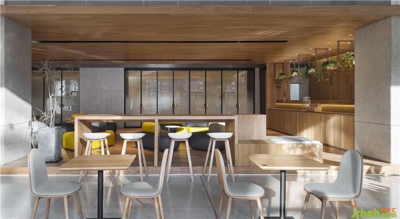 多功能沙龍區(qū),邊界透過(guò)長(zhǎng)條桌形成區(qū)域感。咖啡廳設(shè)計(jì)
