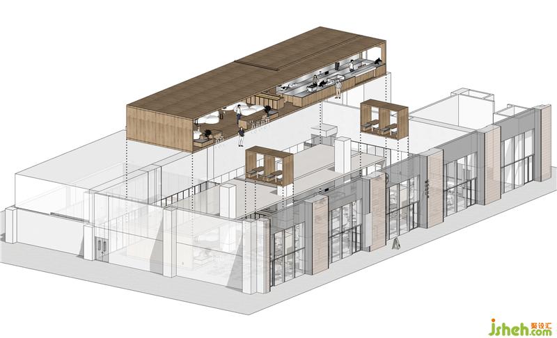 軸側(cè)分析圖,能看到三個(gè)盒子與空間的關(guān)系。
