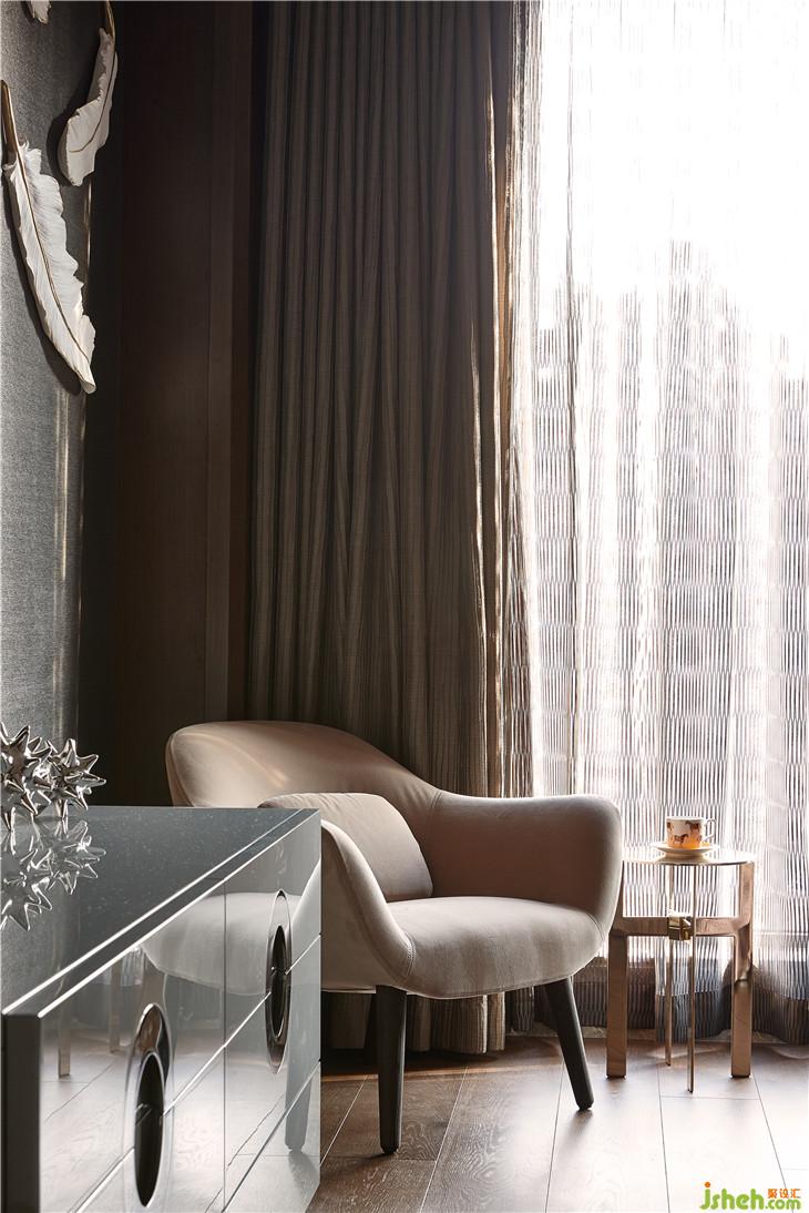 延伸空間生命,構筑人內(nèi)心的精神訴求,是設計之魂。薄紗搖曳的窗臺邊上的minotti絨質單椅,線條優(yōu)雅順暢,在這樣的空間氛圍中獨顯魅力,搭配一幅極具個性的裝飾畫,線條抽象,肆意灑脫,極具藝術肌理,高級感十足,符合現(xiàn)代人的生活品味。