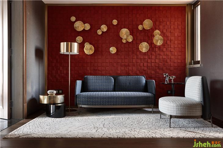 設計的樂趣,在于用特殊的手法,產(chǎn)生眼前一亮的設計語義,關照所有感官,凸顯空間調性。超大主臥套間里的書房,空間布局與色彩搭配,渾然天成。整體的家具結構傾向簡約,自帶時尚質感的紅色絨皮沙發(fā)背景墻,讓人眼前一亮,為整個空間增加了摩登范。