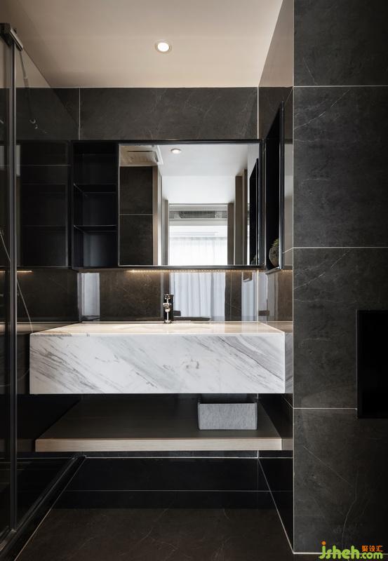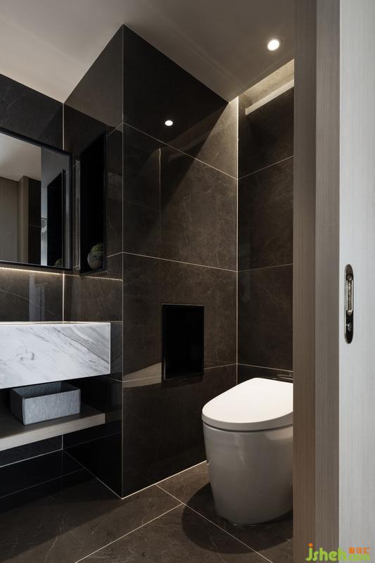△深淺對(duì)比強(qiáng)化衛(wèi)生間的張力與精致的質(zhì)感。