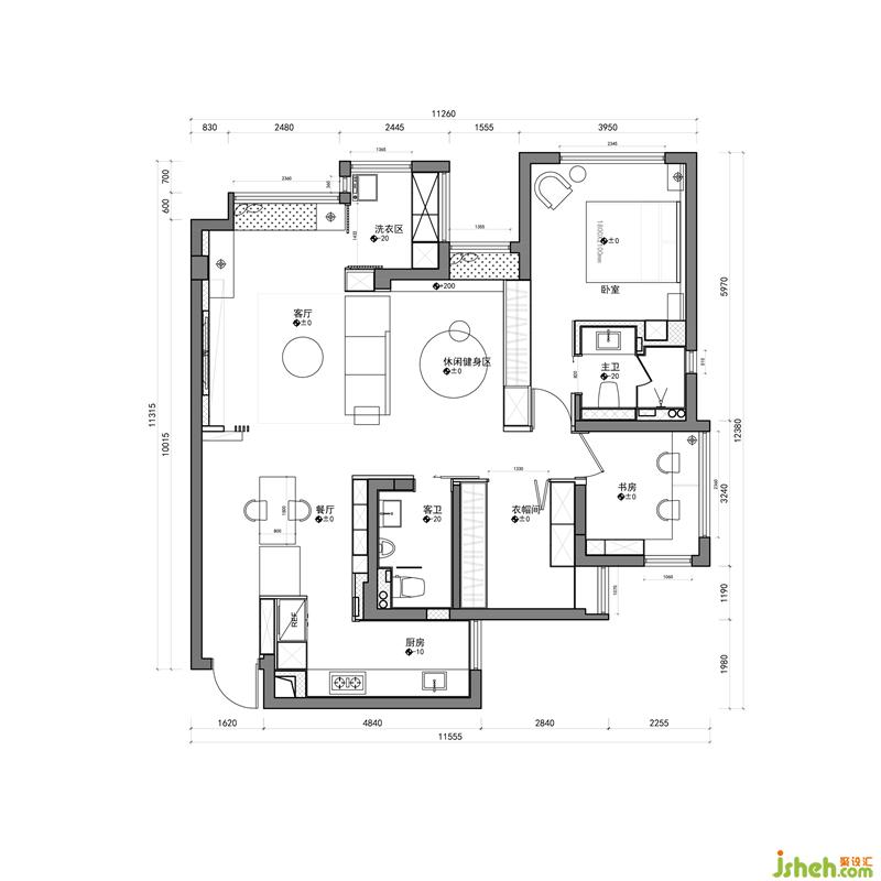 輕食區(qū)讓兩人在料理的時候可以相互陪伴,書房定制長桌給予兩人共同辦公的空間……整屋以兩人為“點”,于細節(jié)處設(shè)置多重對角線,將兩人的互動交流密切聯(lián)系起來。
