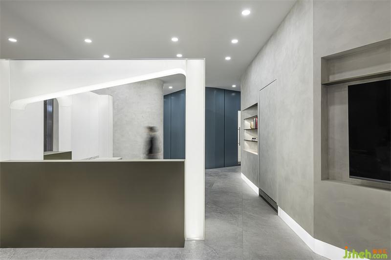 家居設(shè)計(jì)請(qǐng)以盒子隔屏構(gòu)筑的咨詢前臺(tái),在入口大廳形成“回”形動(dòng)線,分別給醫(yī)生和就診者設(shè)置獨(dú)立的交通流線。