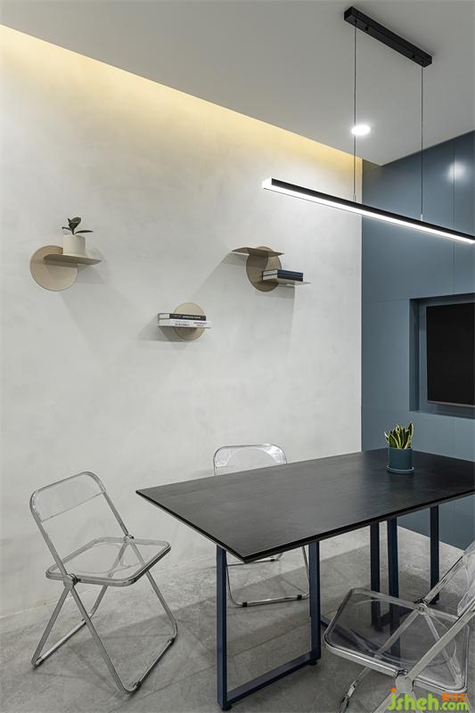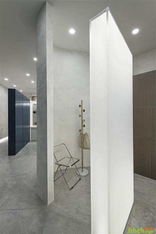 整體空間的灰與白,呈現(xiàn)出輕盈放松的空間表情,口腔診所設(shè)計(jì)深淺不一的灰色排列拼貼,凸顯空間的節(jié)奏層次;灰色藝術(shù)漆寫意中式潑墨山水,情緒內(nèi)斂,點(diǎn)到即止;而穿梭其中的一抹藍(lán)色,讓人靜止如水,鎮(zhèn)定心魂;極簡(jiǎn)流暢的裝置造型,凝聚著足以抗衡外部商場(chǎng)擾攘的平靜意境。