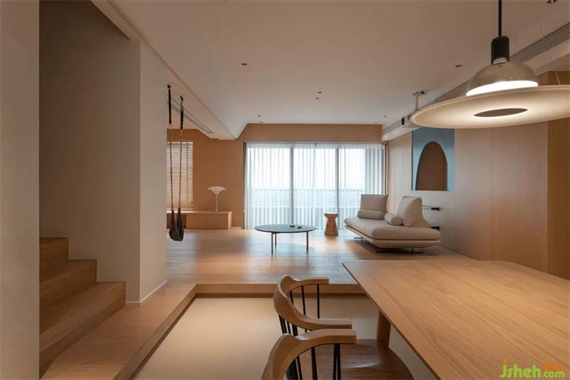再延伸至露臺(tái),一間半開放的茶室,與露臺(tái)連接出室內(nèi)外的空間體驗(yàn),這里便是以待客為主的中心。愜意的午后,陽光作伴,邀上三兩好友,聊天喝茶,靜靜享受當(dāng)下的美好。