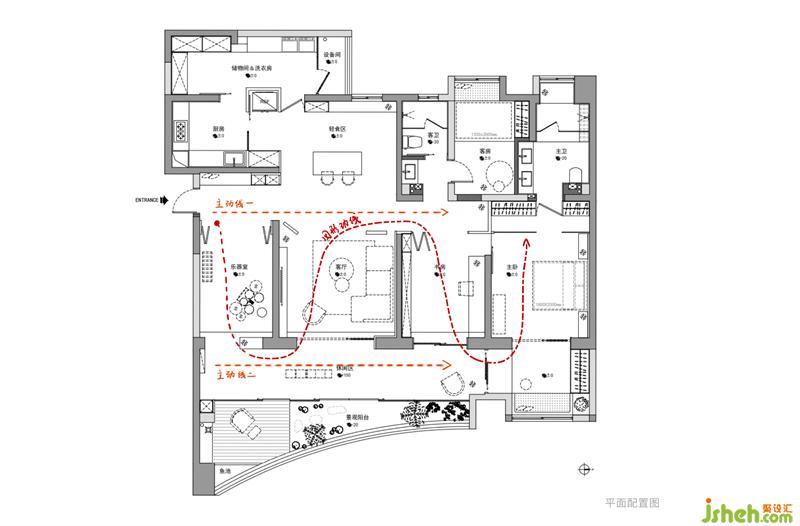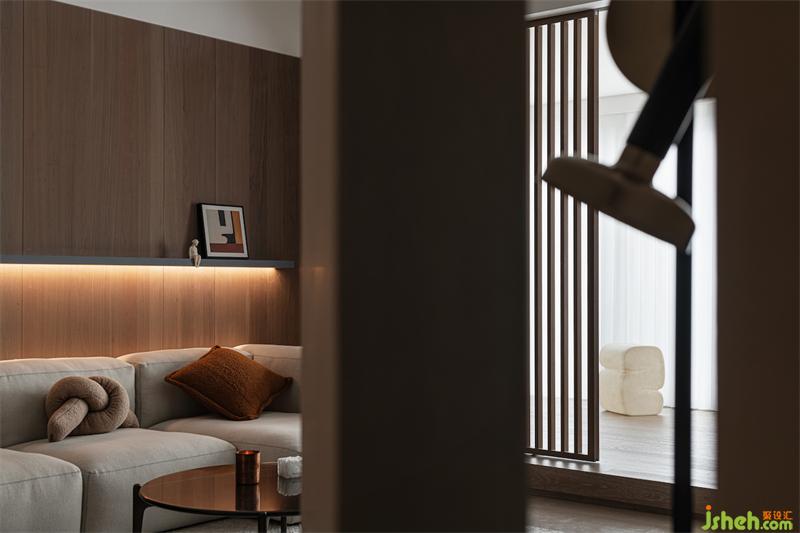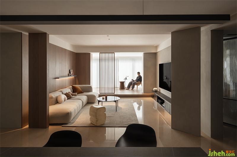 跳脫傳統(tǒng)布局,打破空間隔閡,將樂器室→客廳→書房→主臥劃分為每個(gè)相對獨(dú)立的半包裹空間,璞珥空間設(shè)計(jì)通過兩條過道串聯(lián)不同區(qū)域,一條是從玄關(guān)到主臥的室內(nèi)主動線,另一條則是休閑區(qū)的主動線,形成靈活多變的“回”形動線。