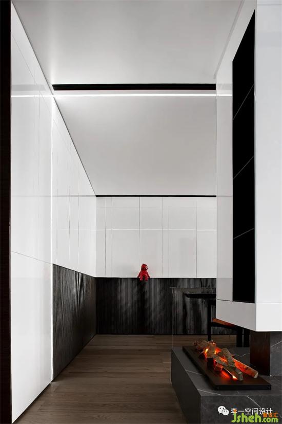 在動線起始的入戶空間中,在并不寬裕的平層空間中圍合出獨立的衣帽間彌補了電梯廳無法放置鞋帽的弊端,畢竟整潔的收納系統(tǒng)是生活儀式的開端;同時利用衣帽空間有效將中廚,洗曬陽臺以及相關設備電器的集成收納進行了空間劃分,一直強調(diào)生活一定裝修設計要丟掉那些可有可無,哪怕只是做到看不見,不是嗎?
