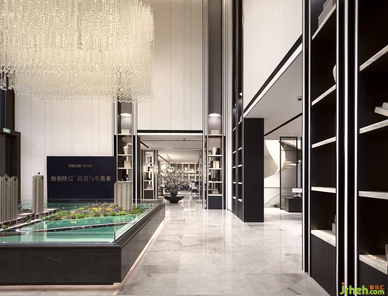兩層挑高的沙盤區(qū),即使多人聚集于此,氣氛并不感到壓抑。深圳設(shè)計(jì)公司高山流水的琉璃燈飾,吸引著客人流連忘返,圍觀駐足。