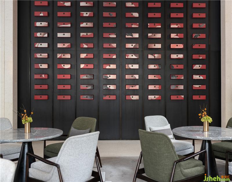 軟裝陳設(shè)上點(diǎn)綴的深邃感的灰綠色與傲骨的紅色,配上溫潤木色和質(zhì)樸的棉麻,穿插的器皿裹上綠植進(jìn)一步豐富視覺層次,家具擺設(shè)以端莊為主,無論質(zhì)感還是舒適度都影射著尊貴,令空間釋放出美學(xué)館獨(dú)有的氛圍。