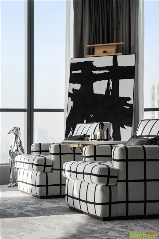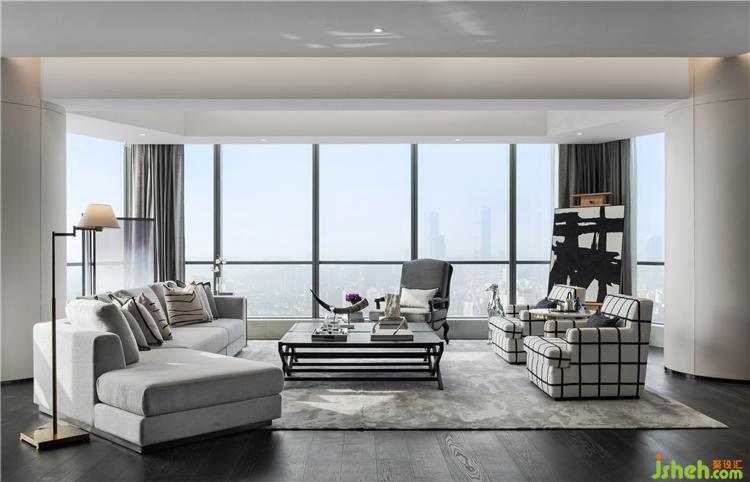 通透開放的空間格局搭配設(shè)計(jì)感強(qiáng)的現(xiàn)代家具,樣板房設(shè)計(jì)頗有媲美紐約頂級(jí)公寓設(shè)計(jì)的風(fēng)尚。